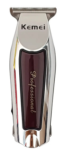 Máquina Profissional Cortar Cabelo E Barba Acabamento Sem Fio Prateado Com Marrom Bivolt 110/220