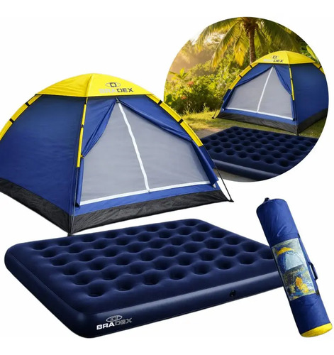 Barraca Camping Iglu 4 Lugares 2,10x2,10m Mais Colchão Casal