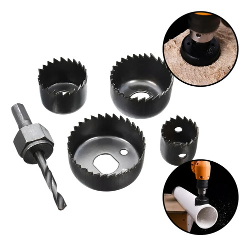 Kit Serra Copo 6 Peças Madeira Gesso PVC 32mm a 54mm Compatível Furadeira