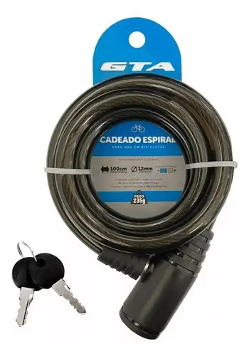 Cadeado Para Bicicleta Com Chave - 12mm X 1000mm Gta Cor Preto