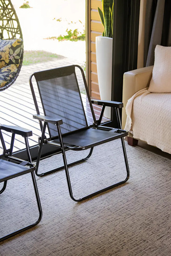 Cadeira De Praia Alumínio Dobrável Suporta 150kg Ergônomica Cor Preto