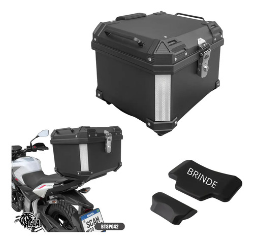 Baú Moto Bauleto Caixa Traseiro 42 Litros Quadrado + Encosto