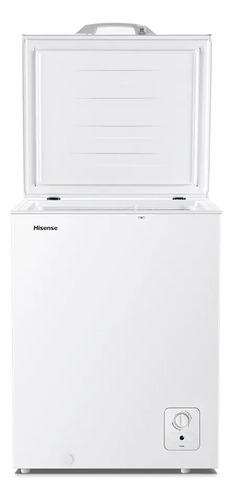 Freezer horizontal Hisense Change de 142 litros na cor branca, compacto e eficiente para uso doméstico.