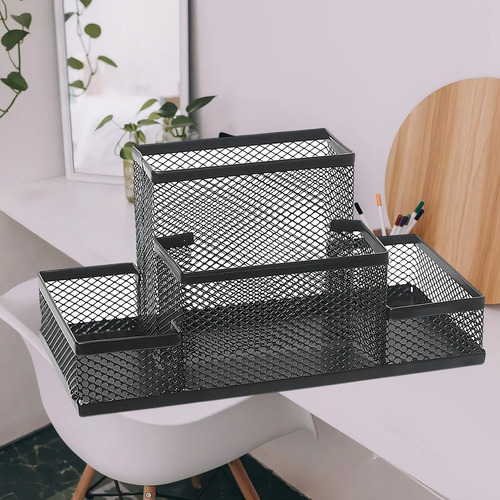 Organizador De Mesa Metal Telado Escritório Porta Lápis Clips Canetas Papel Trecos Aramado 4 Divisorias Escola Trabalho - Efigen