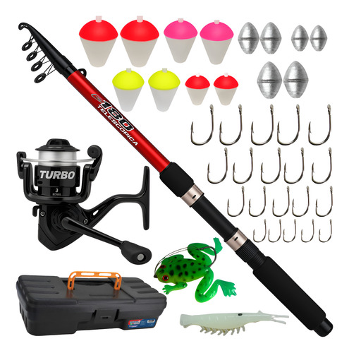 Kit Pesca Completo 2 Varas Telescópica + 2 Molinetes + Iscas