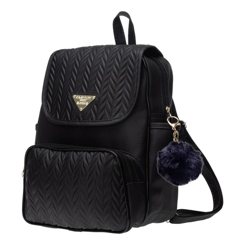 Mochila Feminina Bolsa Escolar Reforçada Trabalho C/ Pompom Preto Estampado