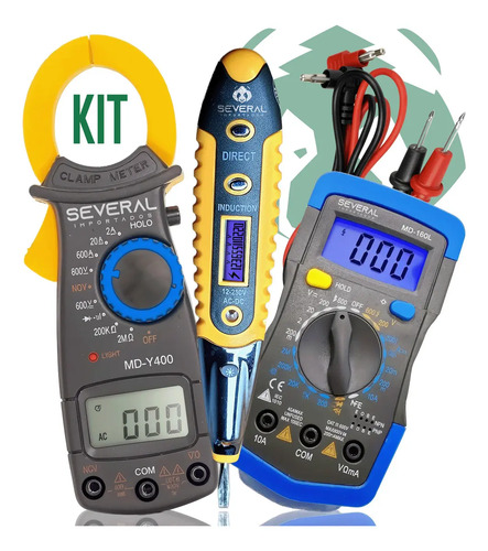 Kit Multimetro Digital Com Display LCD, Alicate Amperimetro Medidor Digital + Caneta De Tensão Several