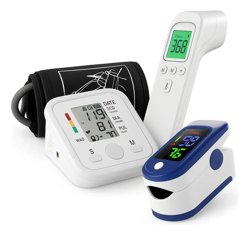 Kit Saúde Combo 3 Em 1 Aparelho Pressão Oxímetro Termômetro