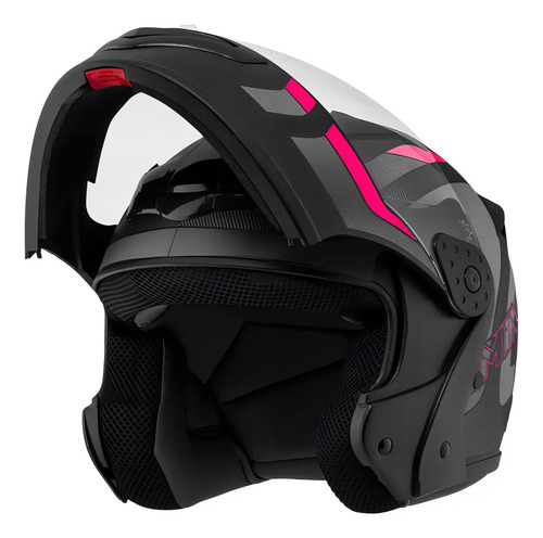 Capacete escamoteável Mixs Gladiator Delta S com queixeira articulada e acabamento fosco cinza/rosa.