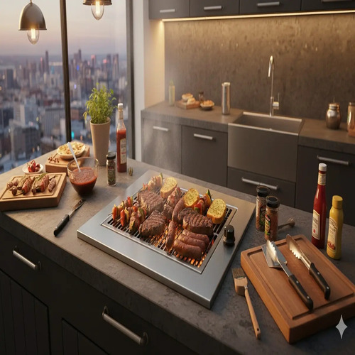 Churrasqueira cooktop com infravermelho a gás para apartamento, sem fumaça e ideal para espaços internos.