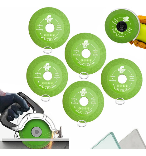 5 Discos Para Cortar Vidro Piso Cerâmica Espelho Acabamento em Porcelanato Disco De 100mm 22mm Com Brinde Anel De Redução Para 20mm Smarter Tools ST-DC01 Verde