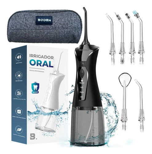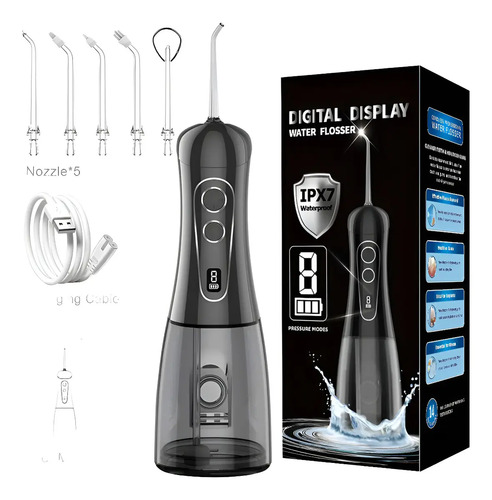 Irrigador Oral Portátil Ipx7 De 400ml Com Jato Forte Pulsado 8 Modos, 5 Bicos,Bivolt Para Limpeza Bucal E Prótese Dentária