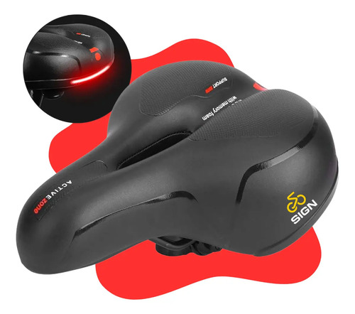 Selim SIGN grande com molas, vazado central, gel e refletor para máximo conforto em MTB e spinning.