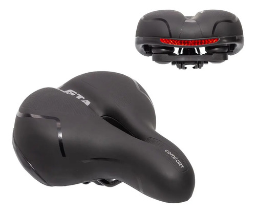 Selim GTA Comfort com gel e elastômero para absorção de impactos, refletor traseiro e design ergonômico.