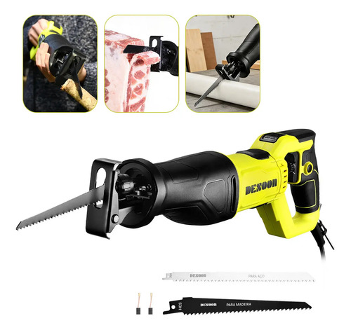 Serra Sabre Elétrica 1200w Real Profissional 22mm 2800spm Corte Madeira Aço Com Punho Giratório E 2pcs Lâminas Desoon